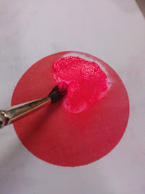 Tässä täytän epäonnistunutta painokuvaa, vähän vaaleamman punaisella värillä. Siitä tuli ihan veikeän näköinen.